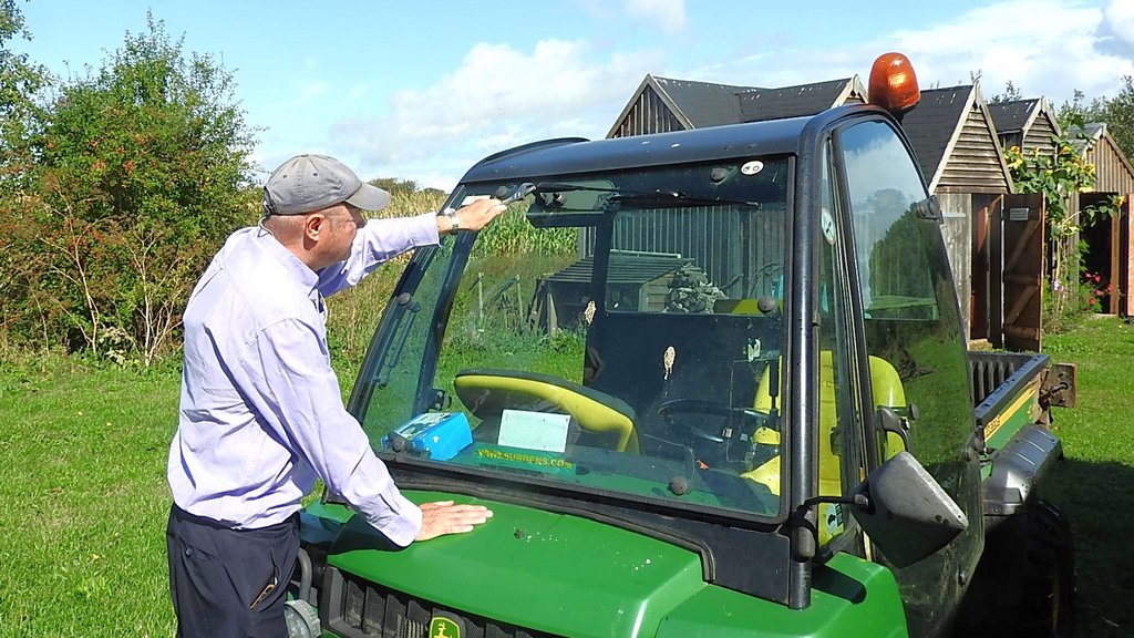 The windscreen wiper fell off the Gator truck at the last open days, so Eddie got a replacement but we had to take off the wiper arm, drill a hole in it and fit a screw to hold the wiper blade on, then refit the arm on the windscreen.