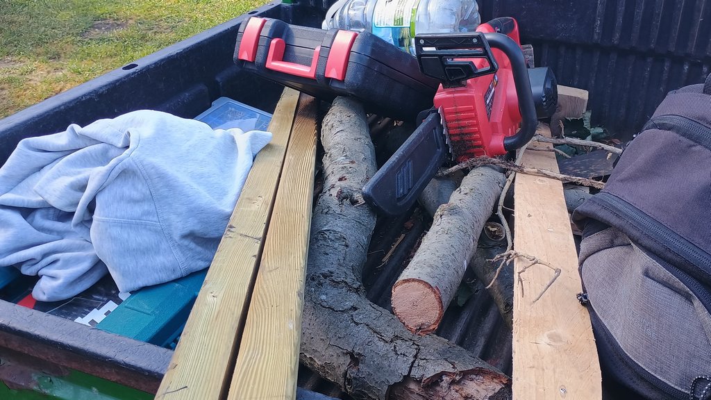 Thursday 28/8/25 We took our tools back to the mill that we used to put up owl boxes at The Maltings last time, as well as branches cut from the trees to make room for the boxes. We also took two lengths of wood from the fire site which I loaded up.