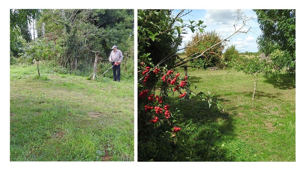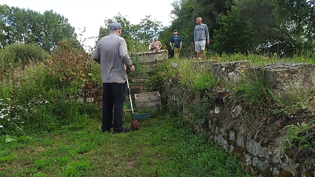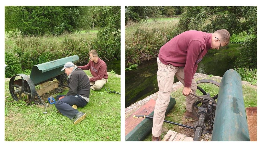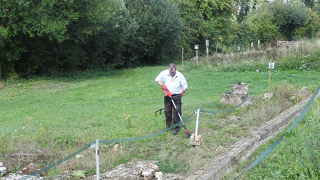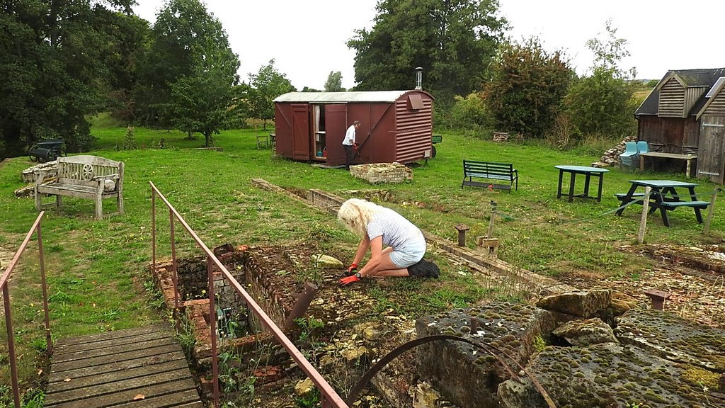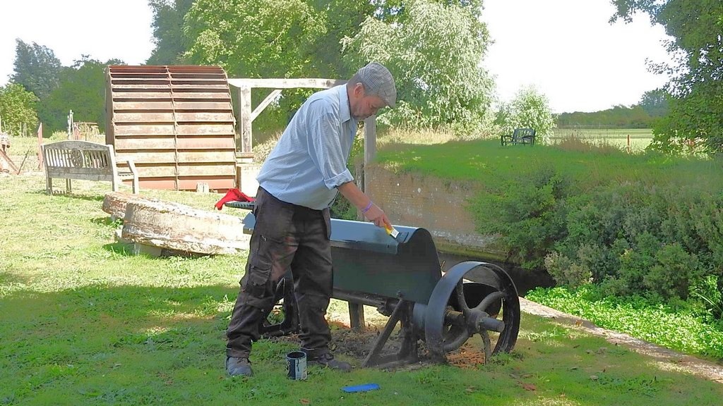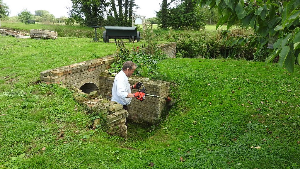 I strimmed the oak tree area as well as the corner of the lawn around the plant pots. We then had a visit from three road maintenance men who are staying in Barge Cottages, they looked around the mill and were interested in the finds and history of the mill, I showed the video of the water wheel turning.