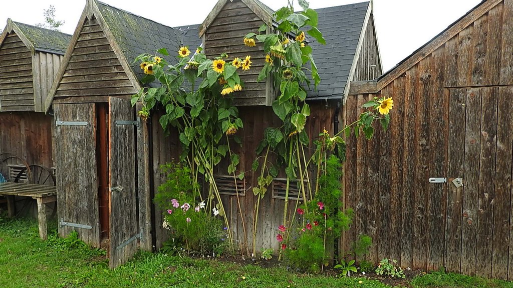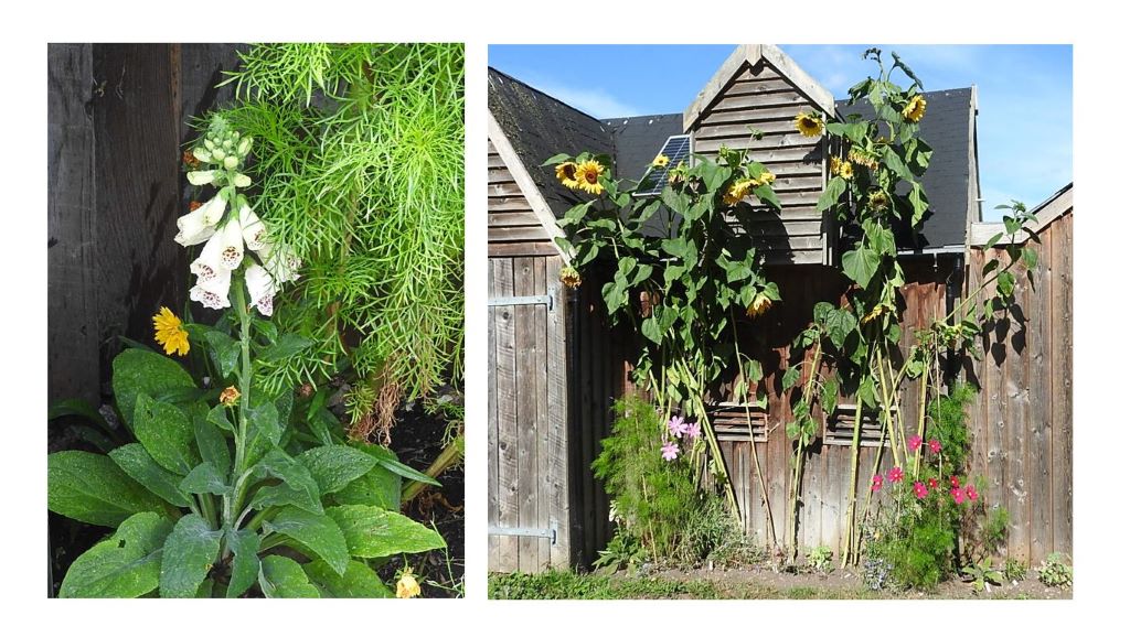 The garden beside the wall is flowering well, there is montbretia which came from Eddie’s garden, larkspur and dianthus which Anne Marie planted earlier this year, I pulled bindweed off the larkspur stem. The garden in front of the visitor centre still has sunflowers and cosmos in flower, there are white foxgloves there as well now.