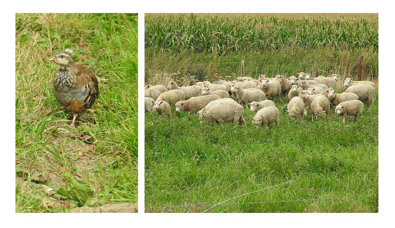 Eddie watered the plants and we filled up the bird feeders and saw a blue tit eating the suet block and peanuts while we had a last cup of tea outside. On our way back we saw a partridge along the track. The field next to the mill is full of sheep, they watched us going past.