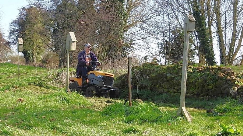 Thursday 19/3/26 It was time to re-seed the wildflower meadow, we did this last Autumn but sowing at different times gives more diverse flowering so I took the mower to cut the new area which we created a year ago. I cut the grass on the shortest setting to help seeds reach the soil.