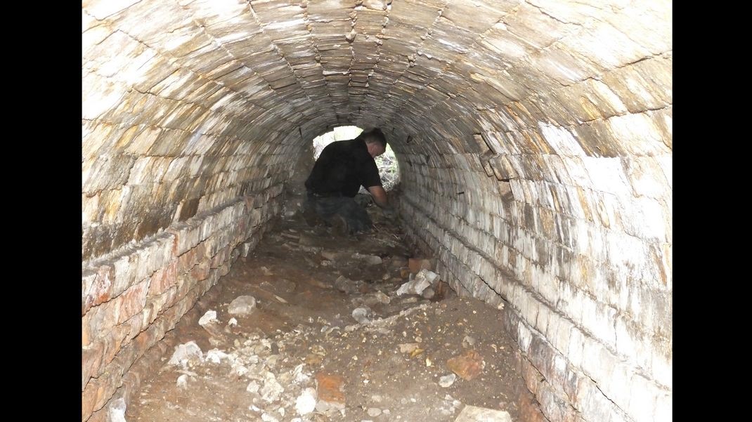 The skull bone was found on 27 June 2015 by Graeme Brown when digging out the down-river exit of the tunnel. It was found near the top of the earth filling the tunnel exit, so excavation stopped in this area, as we needed to preserve the site for potential forensic investigation. As the discovery was towards the end of the working day the Project Manager was informed of the find and he notified the Police who visited the site and took the skull bone away for examination.