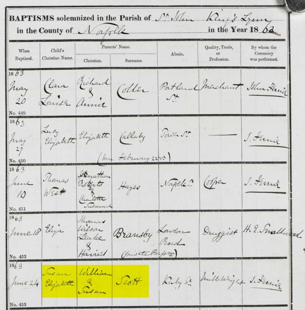 William Scott left two children, Alfred aged 17 and his younger sister Susan, born in1864, so she was four years old when her parents died.