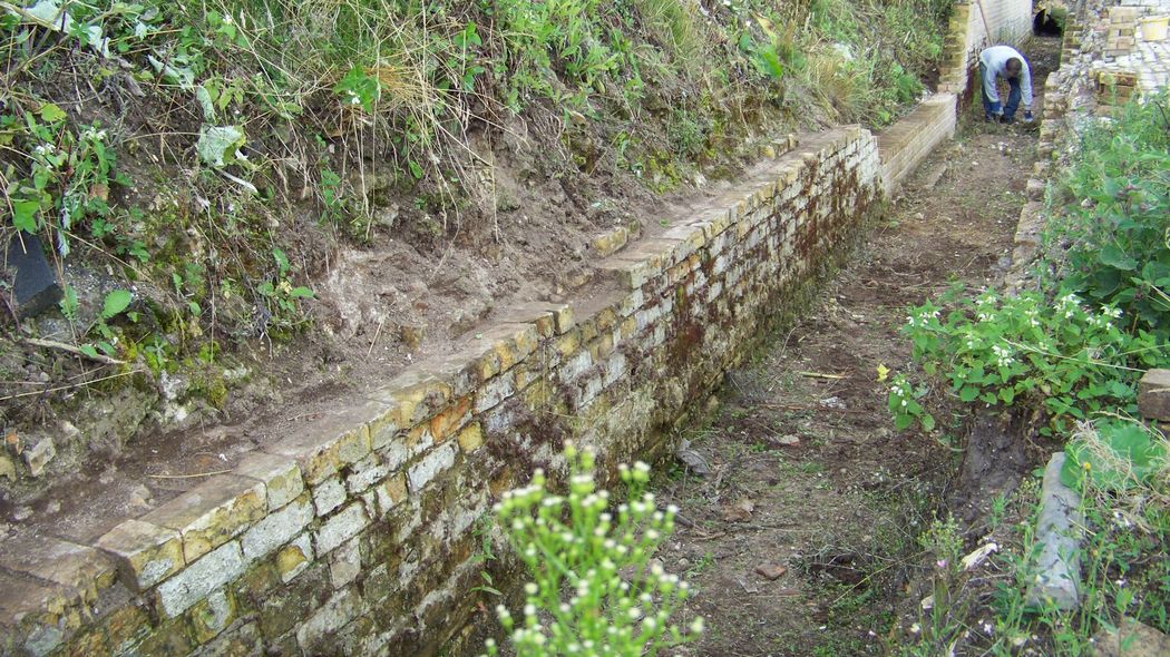 The bypass channel wall was cleaned so the brickwork can be built up, and the recently uncovered brick floor was cleared of large weeds. Reo brought his dart board along so several of us had a game of darts.
