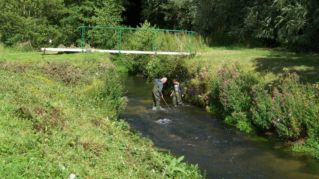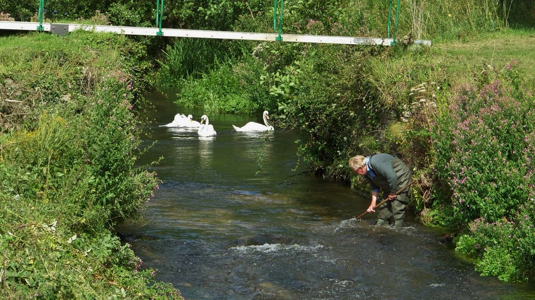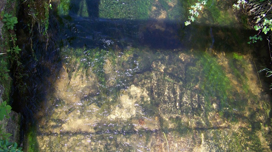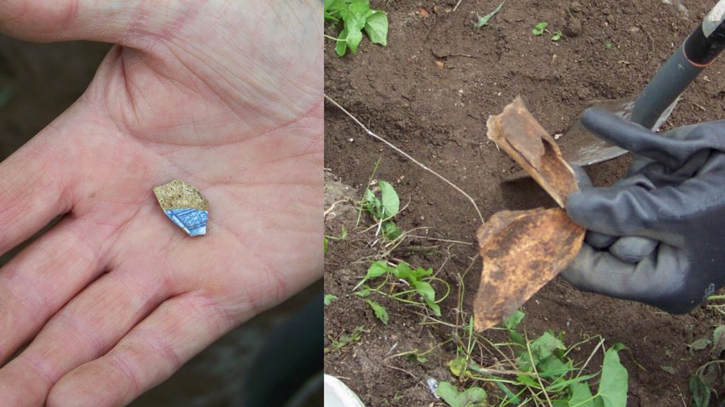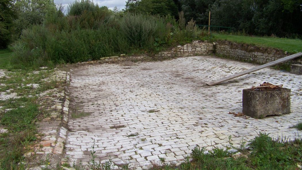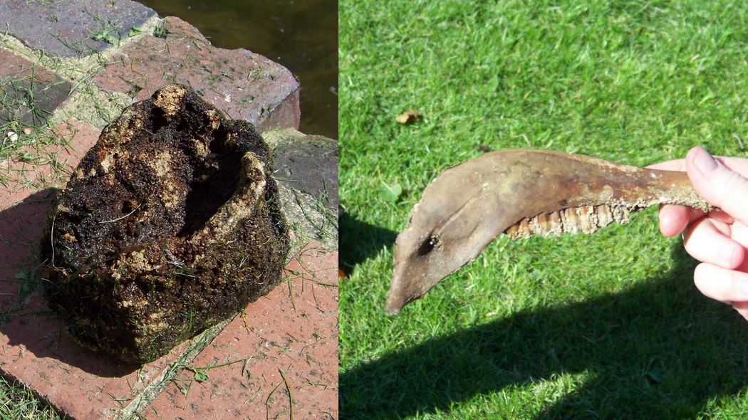 The lock gate area in the river bed was cleaned up by Frank, the V pattern of the gates can now be seen clearly under water from the footbridge. In the river a geode (volcanic larva bubble) was found and Adam found a jawbone with teeth. Near the blacksmith area, small bones and a fragment of pottery were discovered when digging.
