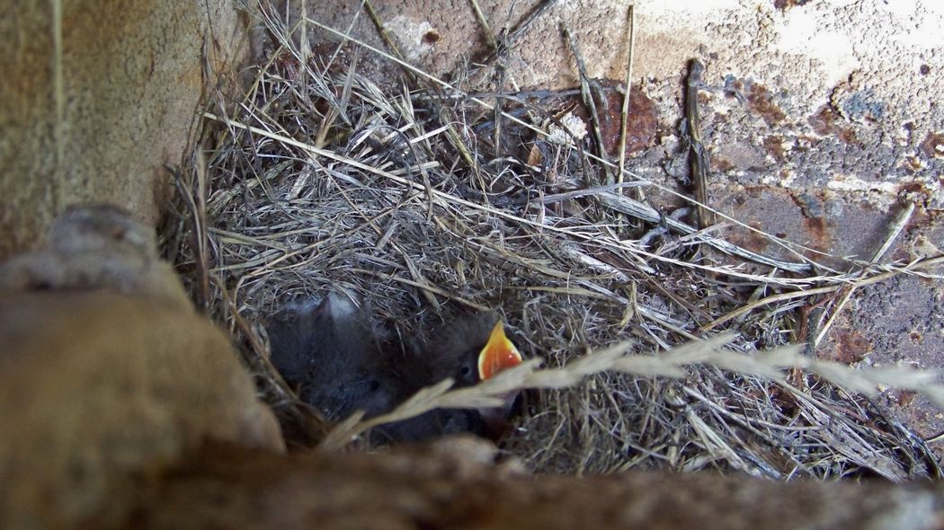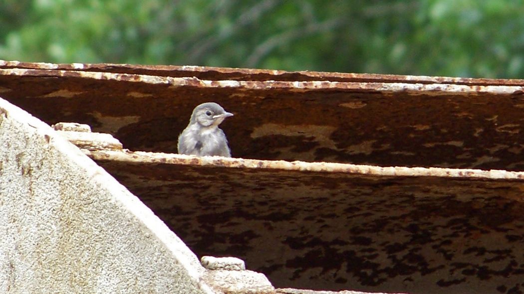 Pied Wagtails have nested in one of the wheel buckets, we took a picture of the babies without disturbing them, the following week the babies were out sitting on the wheel.