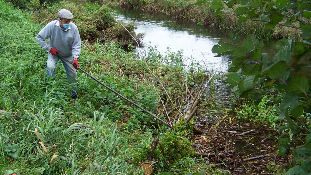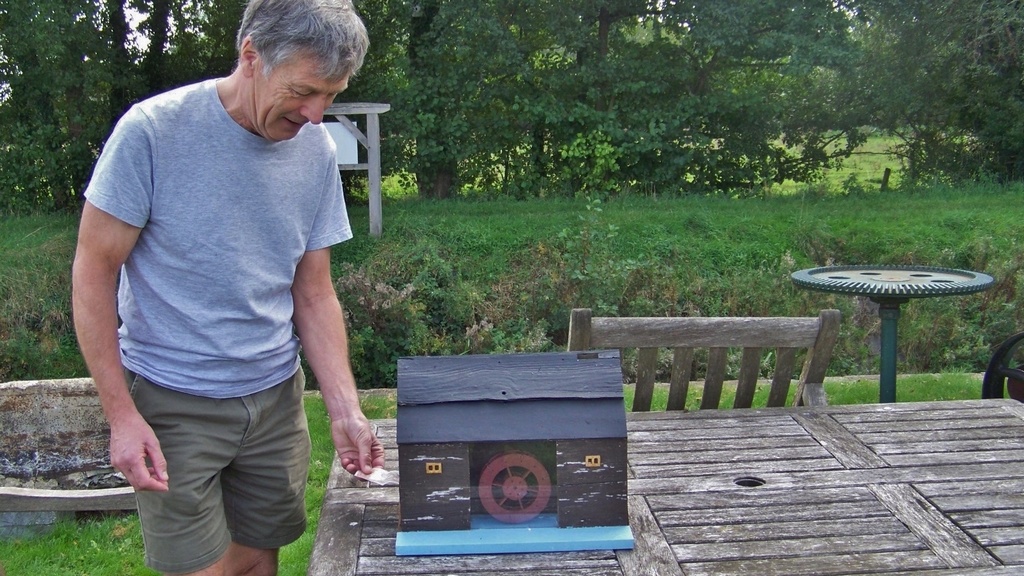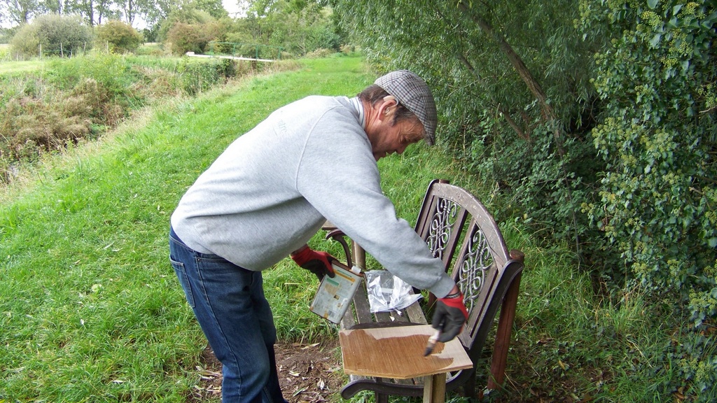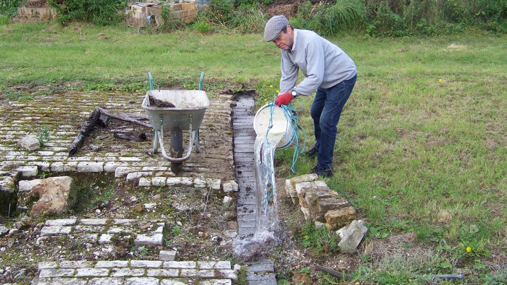 Bricks adjacent to the floors were cleared of soil and washed clean with river water, a historic picture from our display boards which blew into the river was retrieved and dried in the sun, side tables on the bench opposite the water wheel were painted with preservative and levelled.