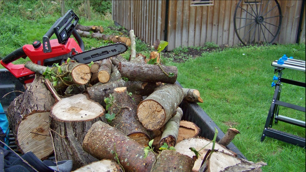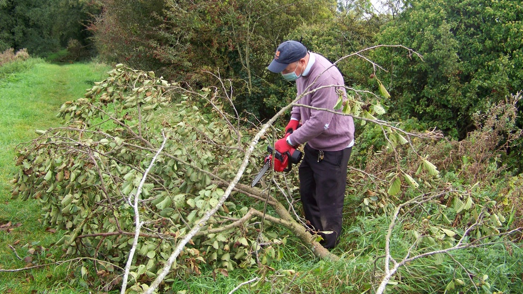 There were 3 more fallen trees blocking the footpath so we crossed our footbridge and cut them away, moving the debris aside for wildlife habitat. We dragged a large branch out of the river near the mill, this was cut into logs for our woodburner in the railway wagon which will soon be in use. The grass areas around the riverside wall and wagon were mown and strimmed.