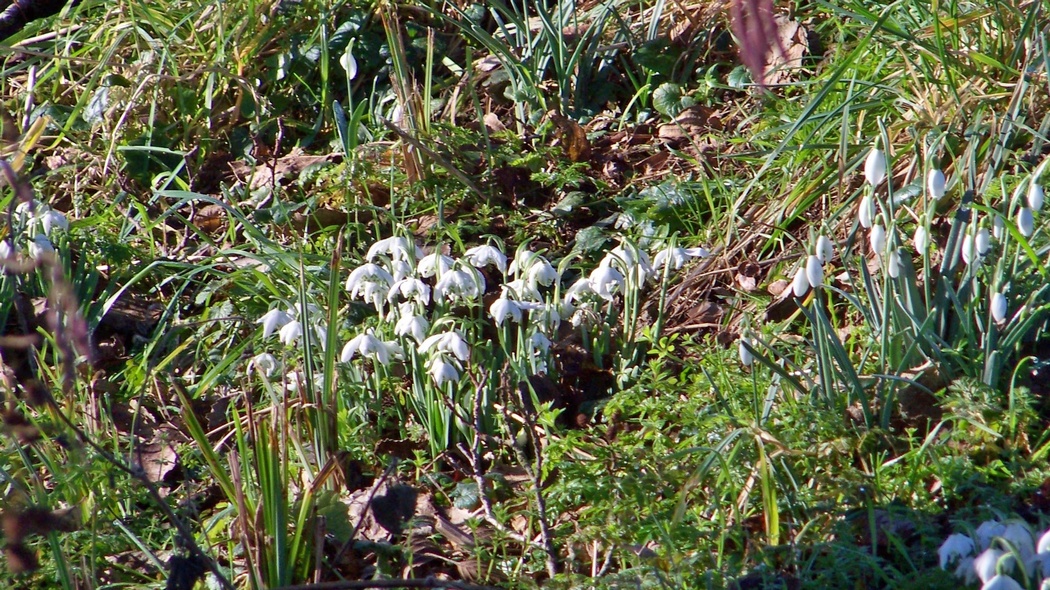 On my latest walk along the river I saw a grey wagtail flying around at the mill and noticed the snowdrops are in flower along the bank next to the wall. There were still traces of snow on the ground.