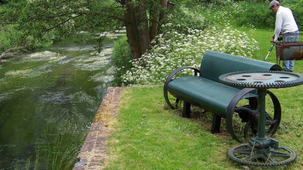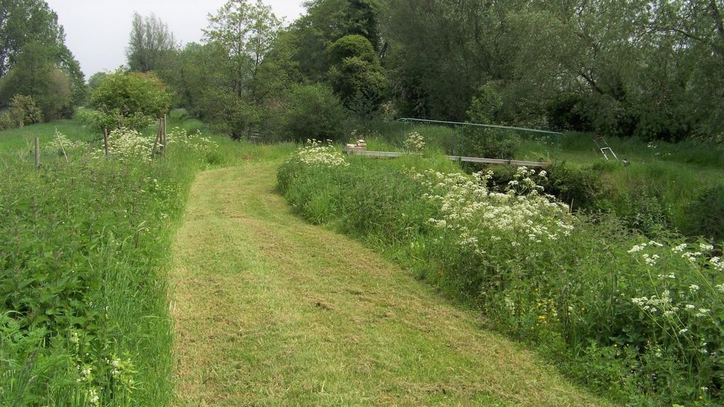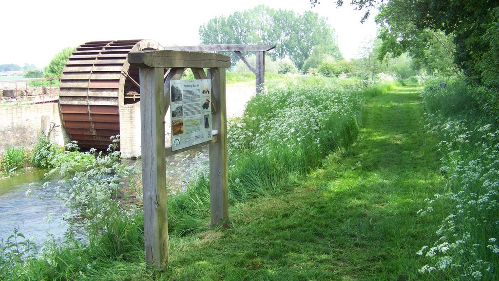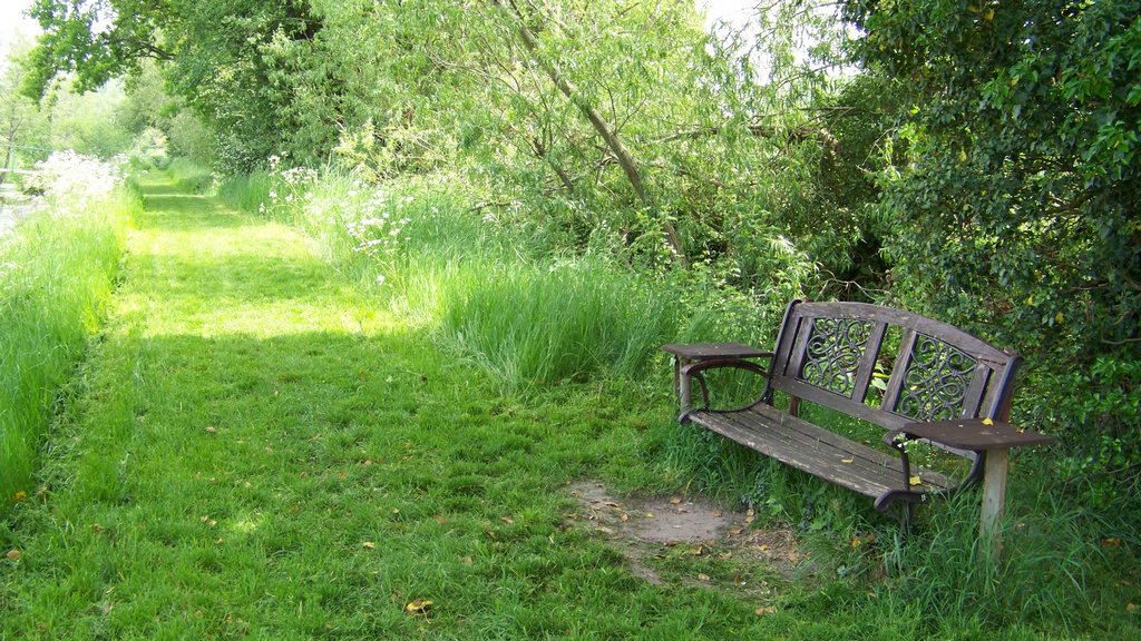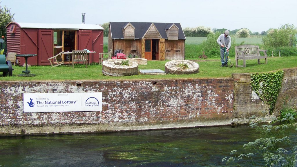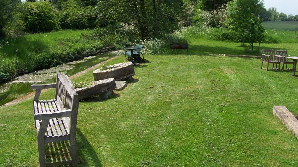 We cleared a small fallen tree blocking the footpath opposite the mill and Eddie mowed the grass along the footpath, around our bridge and sign, as well as round the bench, which Dennis has fitted new side tables to. We strimmed both sides of the river along the footpath and around the grindstones and seats.