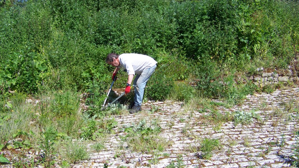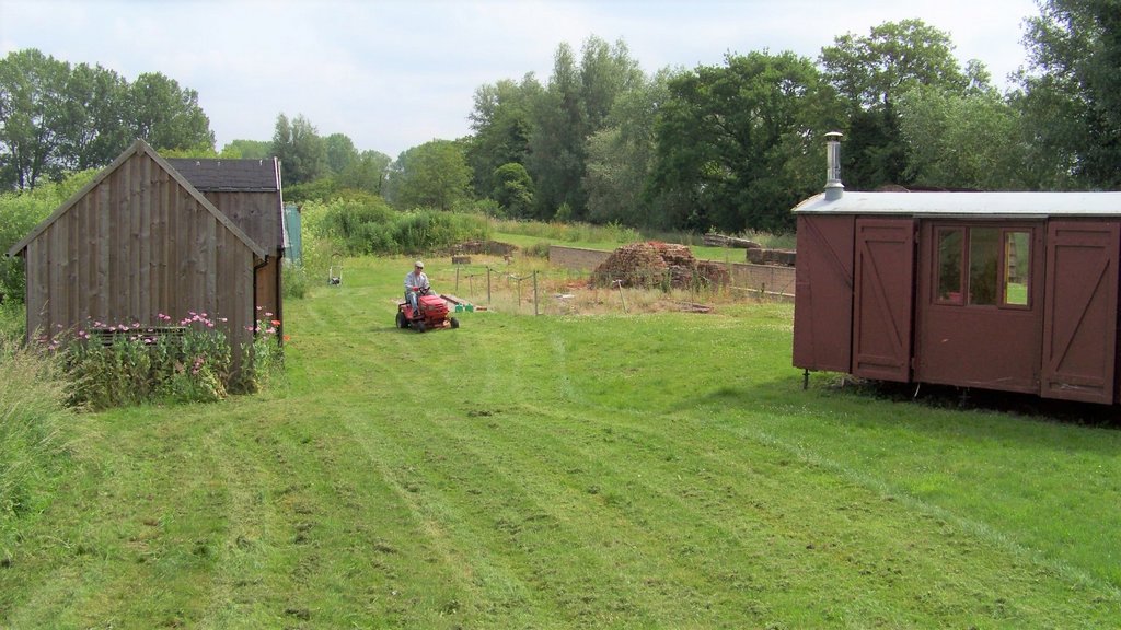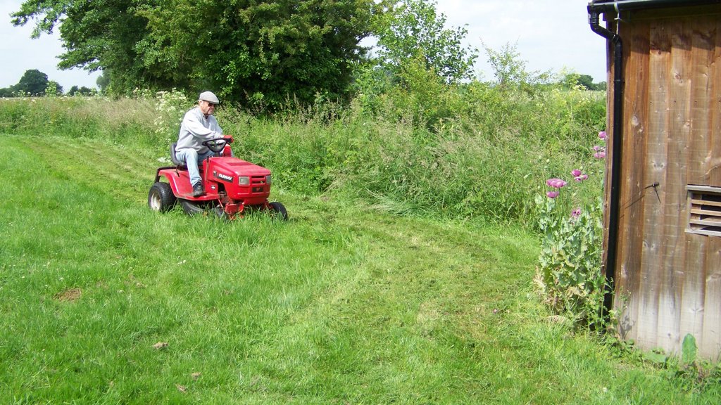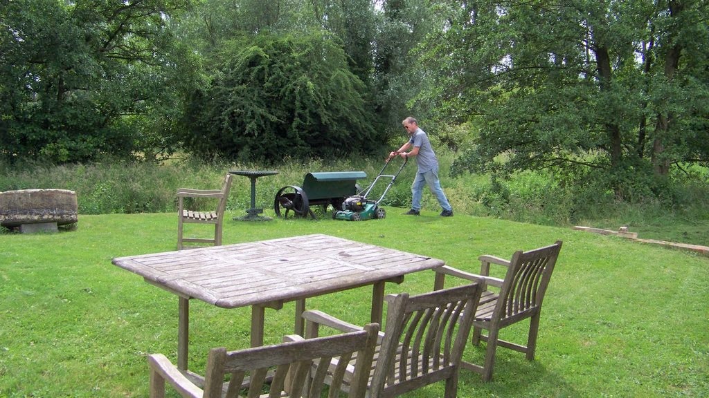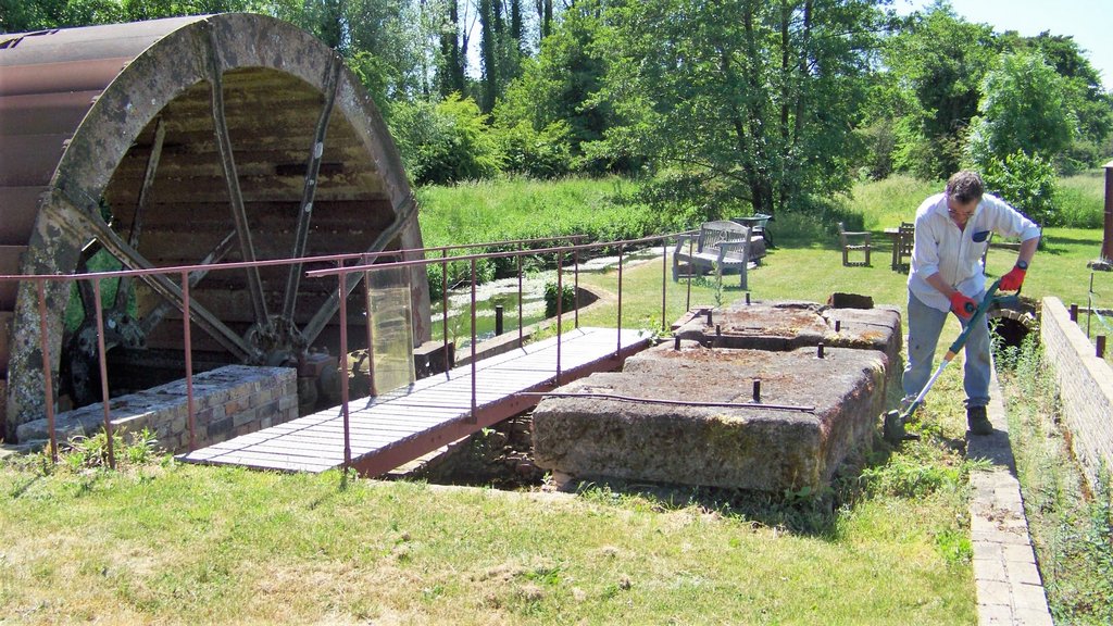 Peter has cut the entire riverside track with the flail and tractor, so we were able to focus on cutting all the grass at the mill which had grown after the recent rain.