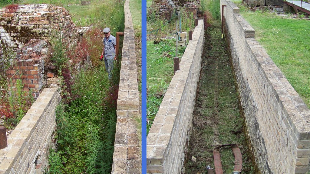 The final job was pulling up large weeds from the bypass channel and putting them on the compost heap, we got about ¾ of the length done, next time we will complete this. The channel contains the metal water feed pipe and irrigation hose used to turn the water wheel with the pump for open days.