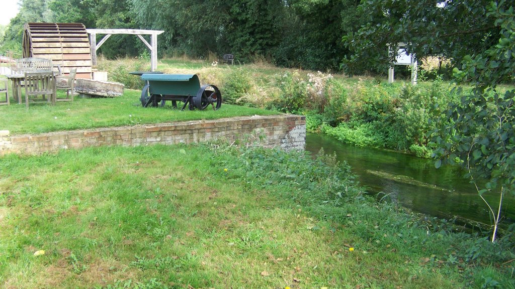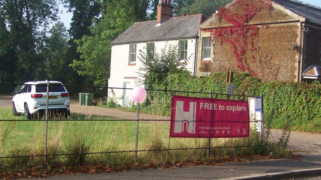 On Friday Eddie and I put out the car park signs, cleaned our HOD banners and put them on the entrance to the car park and our footbridge, as some visitors join us from the Nar Valley Way footpath opposite the mill. We also cleaned and put up bunting on the visitor centre and took the pump and hoses to site. David set up and tested the pump and got the water wheel turning.