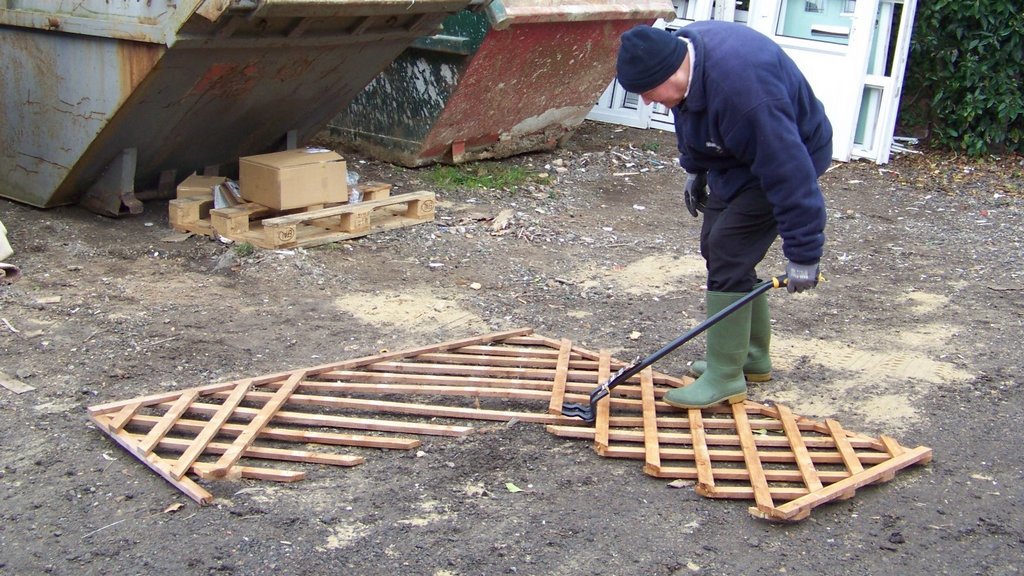 We were given a trellis which we took apart with our new pallet breaking tool, the wood was used to make stands for our insect hotels which are part of the wildflower meadow project.