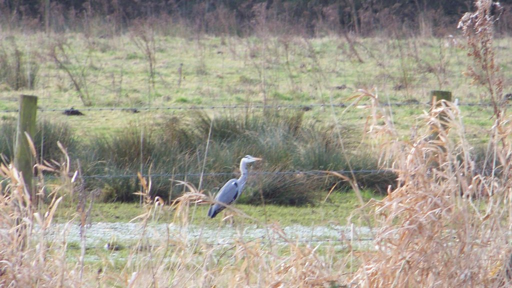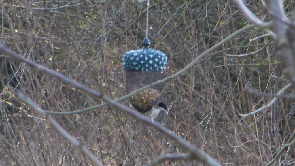 We saw a Kestrel on the way to the mill and Hares in the fields. A new Acorn bird seed feeder was bought to replace the broken one, this was filled with seed and we saw a Marsh Tit eating from it. A pair of Swans went past on the river and a Heron flew over us while we were working and landed in a field.