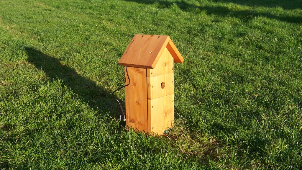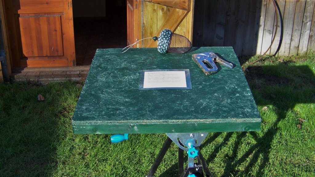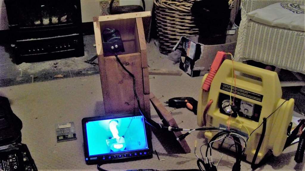 Eddie and I both had some homework, Eddie took the boiling house foundation surround home to paint as it needed several coats, and I fitted one of the cameras into the tall nest box and tested it with the monitor, I used the jump starter as a power source. We finished painting the wooden surround at the mill, Eddie painted the outside brown and I gave the inside a final coat of light green, it was left in the container to dry so it can be fitted around the foundation next time.