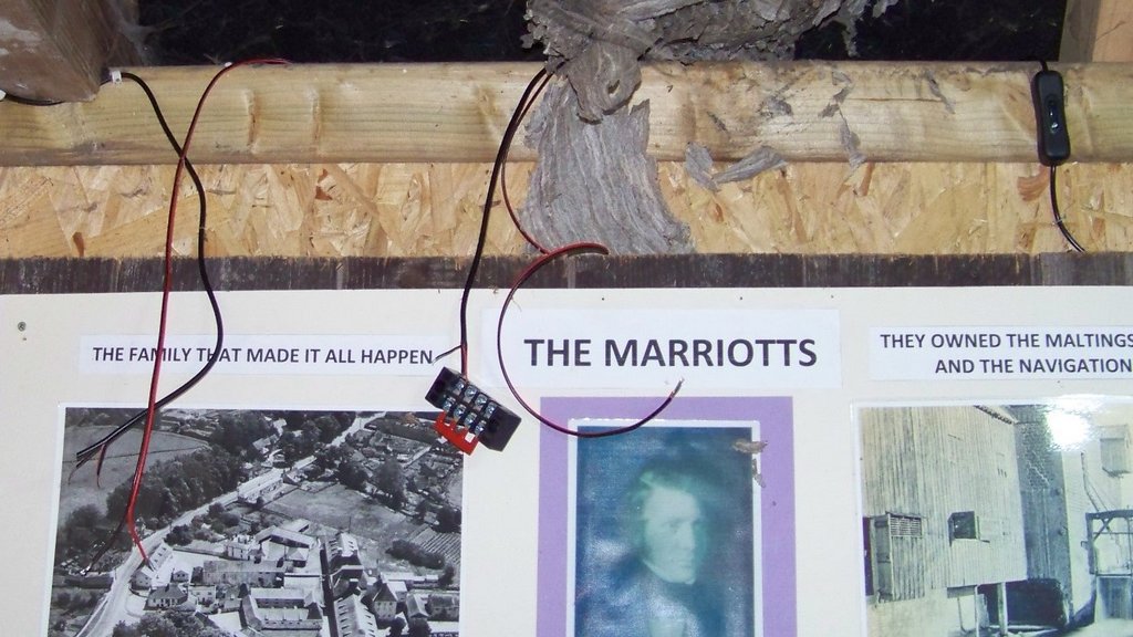 Saturday 17/9/22 We started setting up for Heritage Open Days at 9:00 am, as we opened to the public at 11:00 am. Ryan and Emma put up balloons and HOD signs by all the entrances, David and I put up additional parking direction signs at The Maltings. The trailer was loaded up including a bench for people waiting for transport to the mill, which was put by the railway piers on our way down, we also stopped at the upper lock to put out the information sign and picture of Airmen swimming there in 1917.