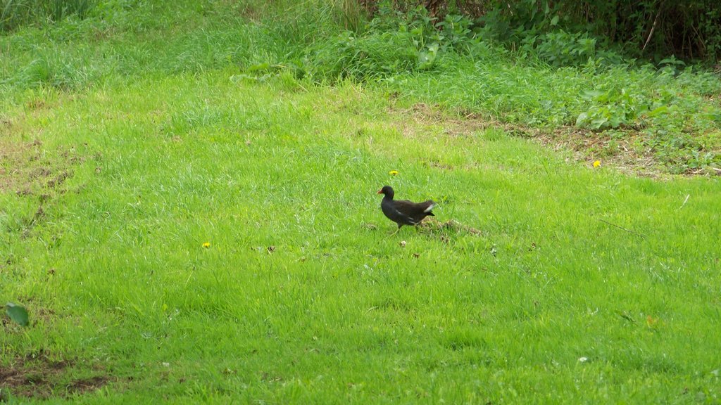 Emma spent the morning weeding the wildflower area with a hoe, as lots of small weeds have come back. We'll prepare the soil and sow wildflower seeds after the open days. Emma then cleaned the visitor centre and railway wagon which will be our kitchen. Emma kept us supplied with tea and biscuits which we had outside, Eddie spotted a Moorhen crossing our lawn.