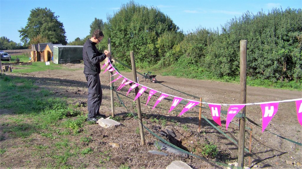 Back at The Maltings we put up car park and toilet signs ready for the open days, the recent rain softened the ground making it easier to hammer sign posts in. We put our HOD banner on the main entrance, we will also put one on our bridge.