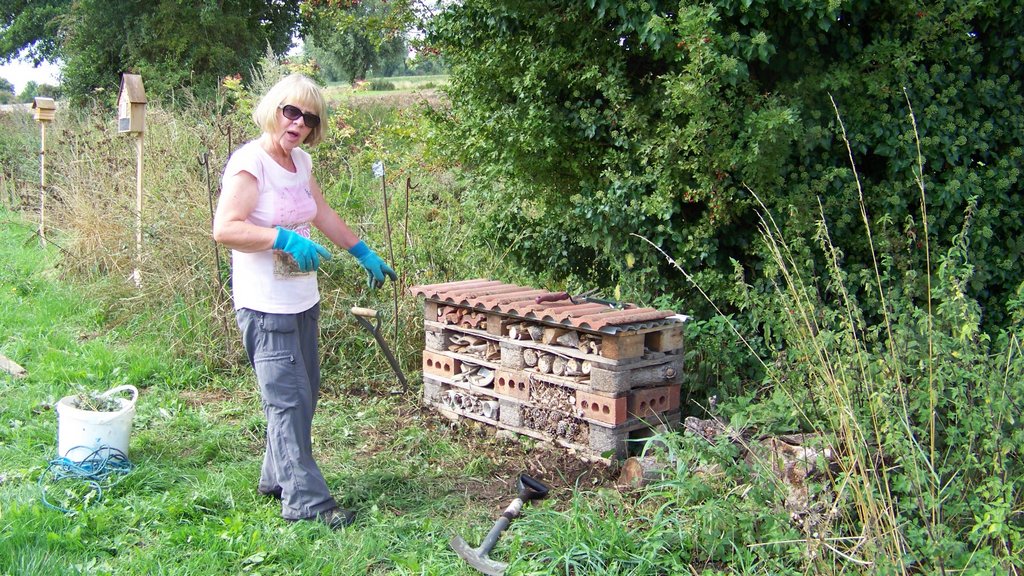 SATURDAY 10/9/22 There were 6 of us including Anne Marie who answered our volunteer appeal notice on the Nar Valley Way and spent the day clearing weeds and debris around the wildlife habitat and insect hotels which were very overgrown. They are now tidy and fully visible, we could see the drilled logs in the habitat have sealed ends where insects have laid their larvae.
