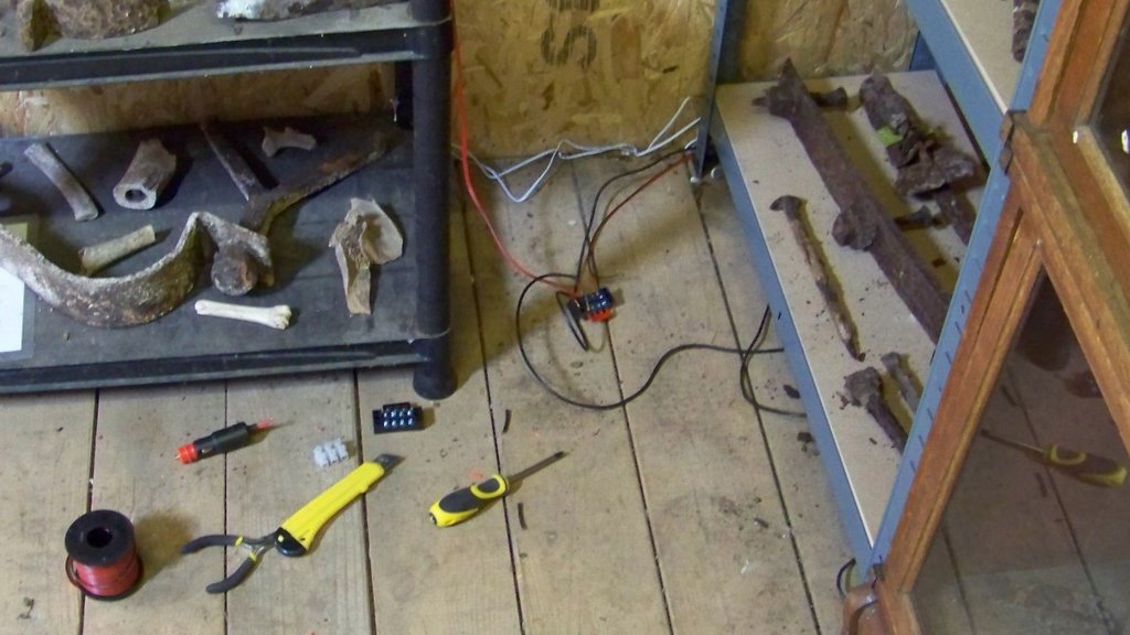 I fitted the new swivel bracket for the main display screen in the visitor centre, this gives a much better viewing angle. I then fitted the new rack of parts bins in the shed, Eddie and I filled it with screws, nails and other bits & pieces. Ryan and I started connecting wiring in the visitor centre to the illuminated shelves and display screens using new busbar terminal blocks.
