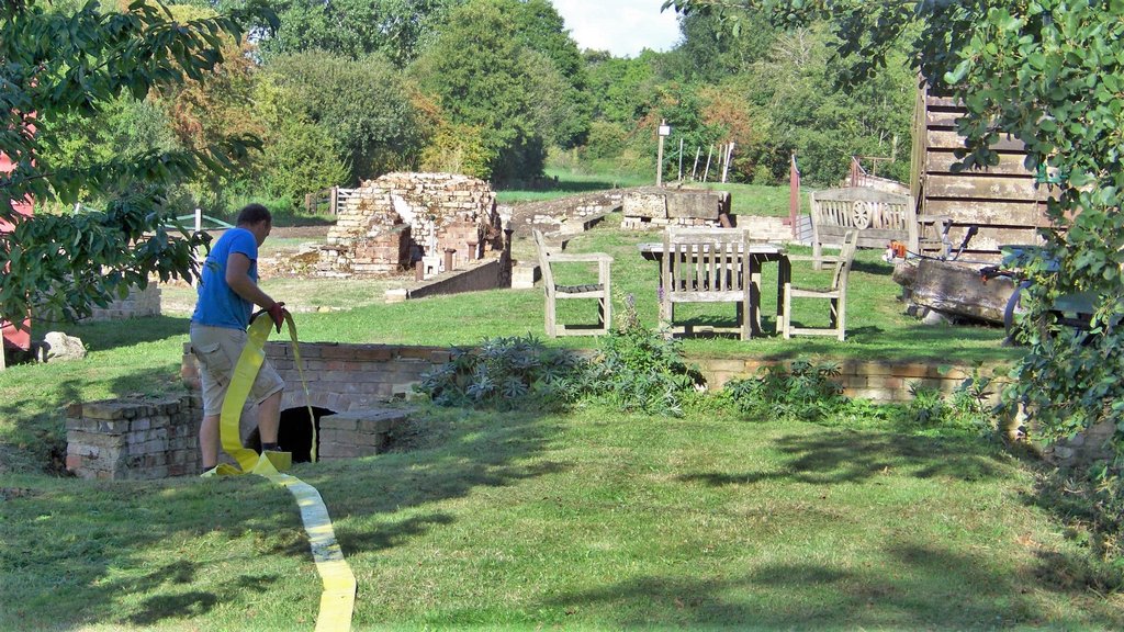 Emma weeded behind the water wheel at river level and pulled Ivy off the river wall, while David strimmed the river bank. Eddie repaired the cycle rack which got damaged last week, then strimmed around all the features and buildings. Emma tidied the railway wagon which will be the kitchen at the open days.