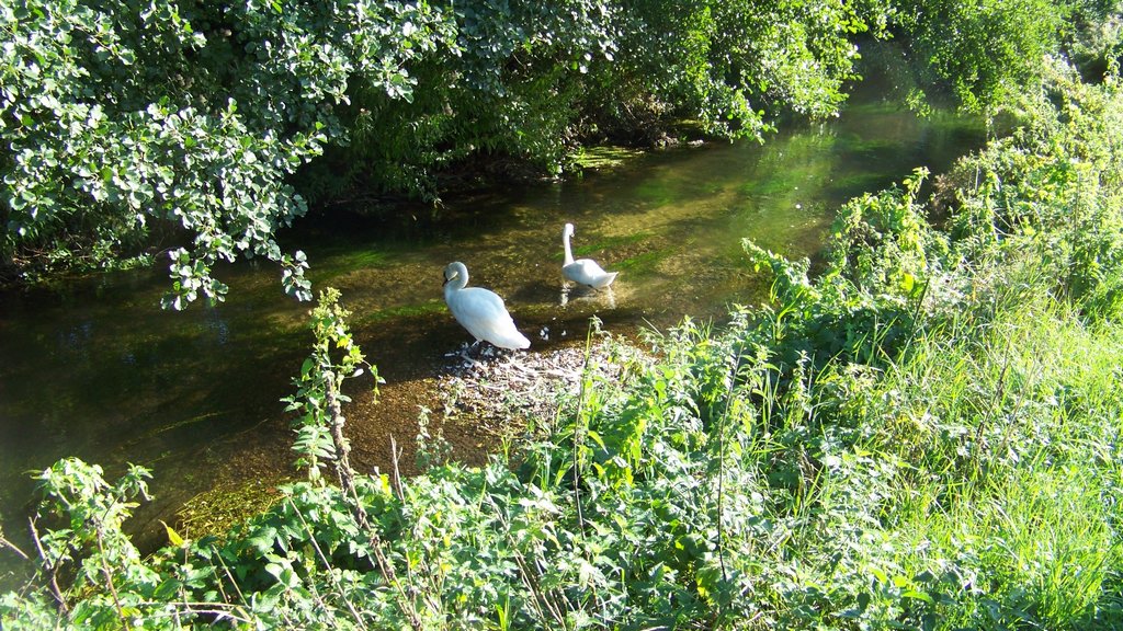 Eddie cleaned all the outside chairs then unlocked the water wheel. David connected hoses and started the pump which got the water wheel turning ready for the open days. On our journeys along the river bank we noticed Swans have made a nest just upstream from the bone mill.