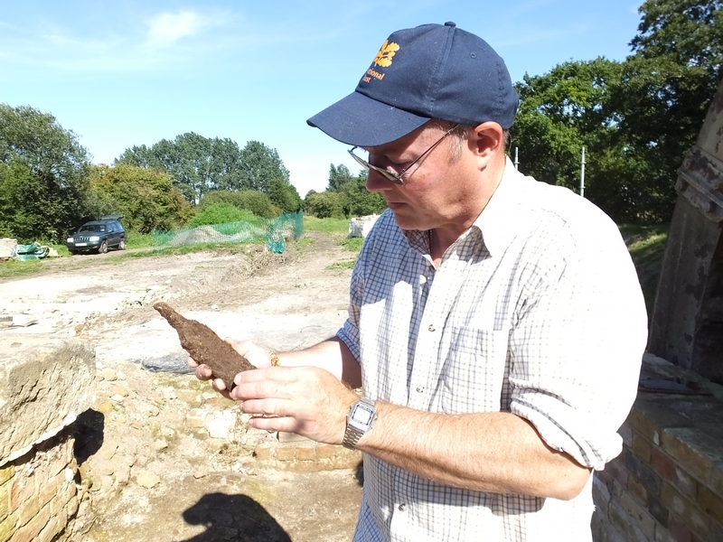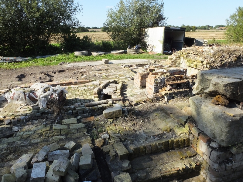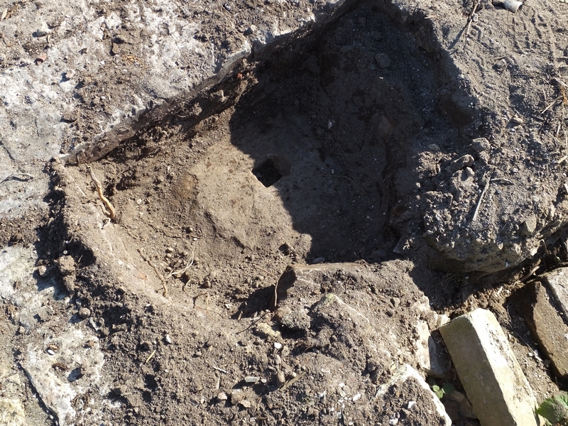 Two small areas within the brick floor of the main building filled with earth were dug out and this revealed wood on top of solid bases, possibly machine mountings.