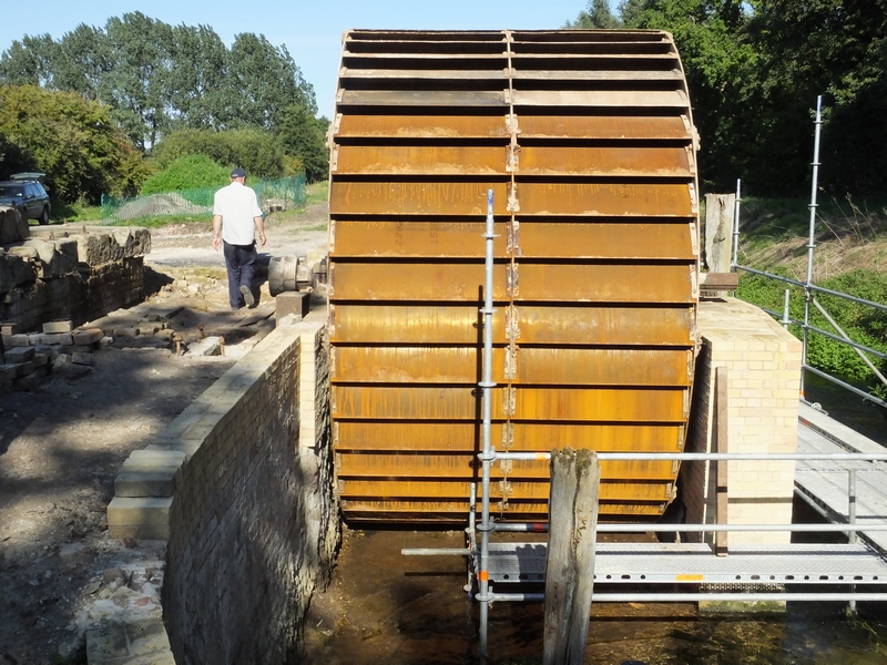 The last sections of steel have been replaced on the water wheel and the bearing caps have been fitted. We went down onto the scaffolding around the wheel for a closer look at the steelwork, a grass snake crossed the river and we watched it swim along the length of the wall.