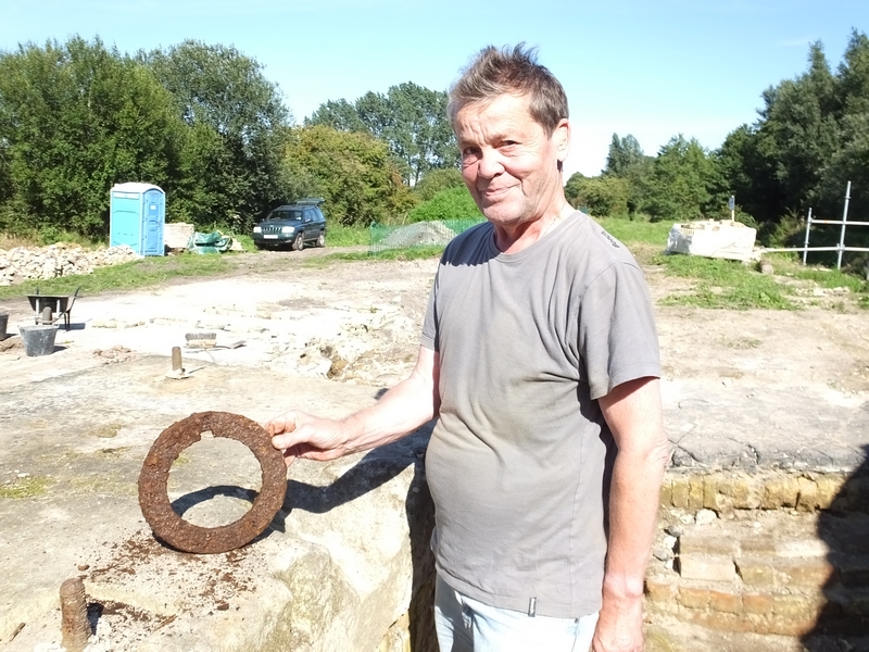 The first task today was preparing the site for visitors which involved removing the ladder to the wheel pit and the bridge over the trench, these were used by the steel contactors earlier in the week. We also tidied up scaffold poles and moved the temporary fence so the furnace area could be viewed, the elevator was uncovered and the water wheel bearings were oiled.