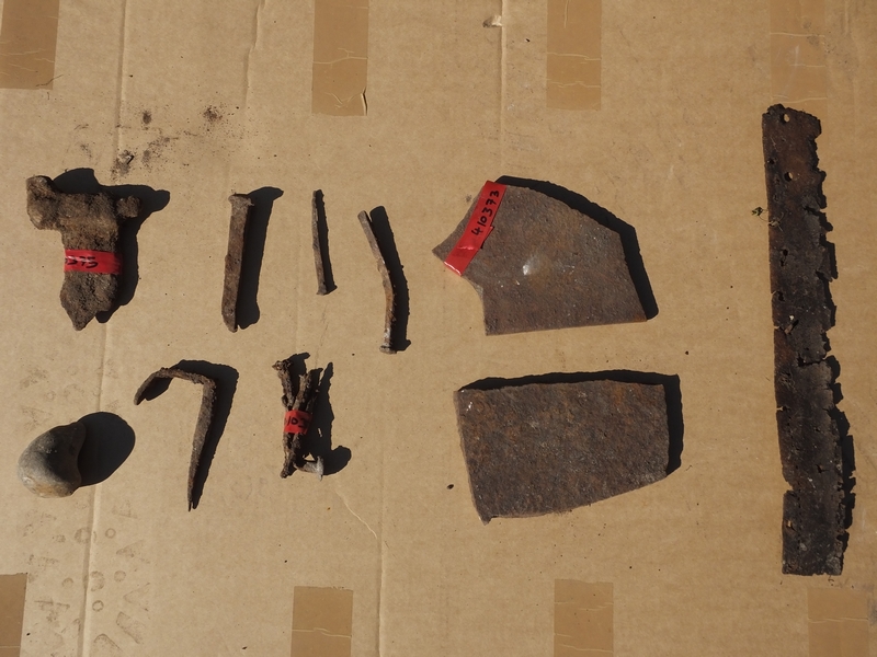 Saturday finds included a pottery jar which had been cut across, large piece of curved casting, 2 pieces of leather belt (possibly control belt for the governor, horse tack or drive belt), door latch, hook nail and a piece of drain pipe.