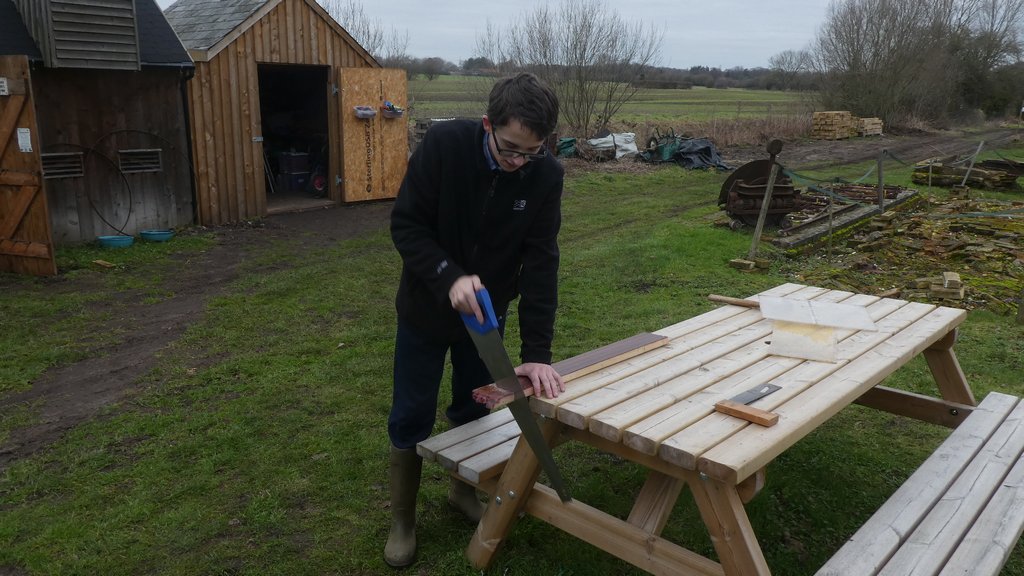 Many of Geoff’s tools which Eddie and I brought recently were used today including G clamps, square, axe and folding saw. On our way back along the river we saw an Egret in flight.