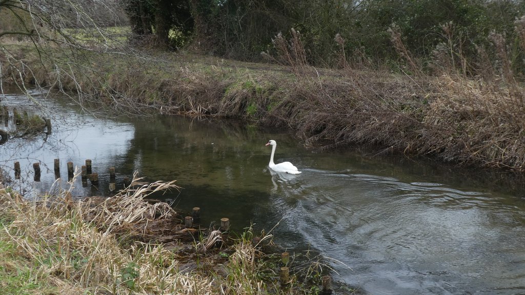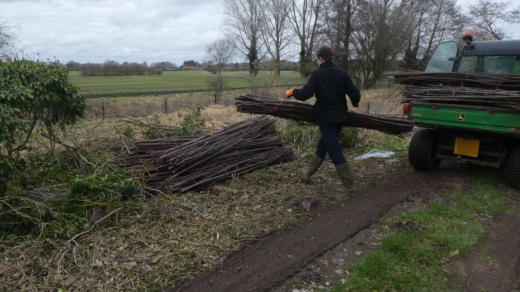 We moved more bundles of sticks from the wildflower area and took them along the river bank, we moved nearly a complete pack, there are about four more so this will keep us busy. A lone Swan was in that part of the river all day.