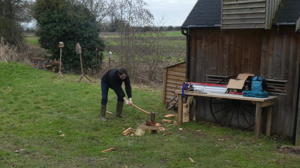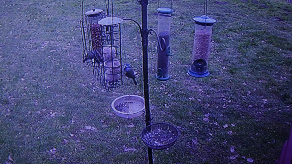 Ryan split more firewood and kept the fire going. While eating lunch in the railway wagon, I switched on the nest cameras and watched birds eating peanuts from the new Squirrel proof feeder and suet balls.