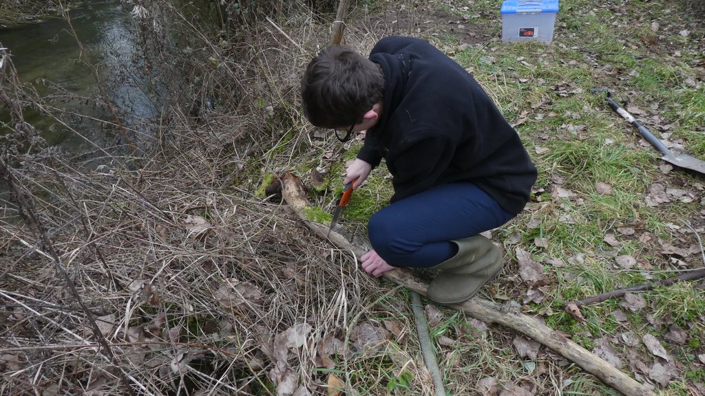 Eddie, Ryan and I continued clearing away the bundles of sticks left on the wildflower area, we put them in a clearing along the river bank. Ryan ended up moving most of them himself and there is now only one more pack to move. In Spring we’ll sow more wildflower seed in the patch where the sticks were.