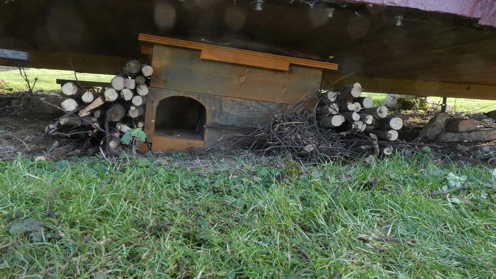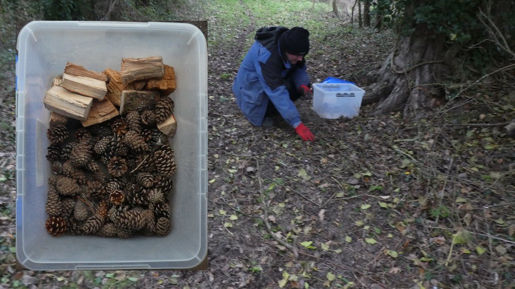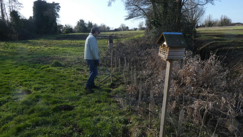 Eddie and Ryan cut fallen branches and we put them around the Hedgehog boxes under the railway wagon, as Beryl told us Hedgehogs don’t like their boxes to be exposed. One of the boxes has a nest camera but it has not been occupied yet. Eddie straightened the insect hotels which were leaning over.