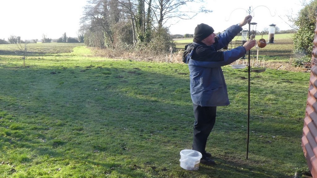 Thursday 9/2/23 Beryl, the site owner gave us a fat filled Coconut which I hung on the bird feeding station, I topped up the water and suet balls and Eddie filled the seed and peanut feeders.