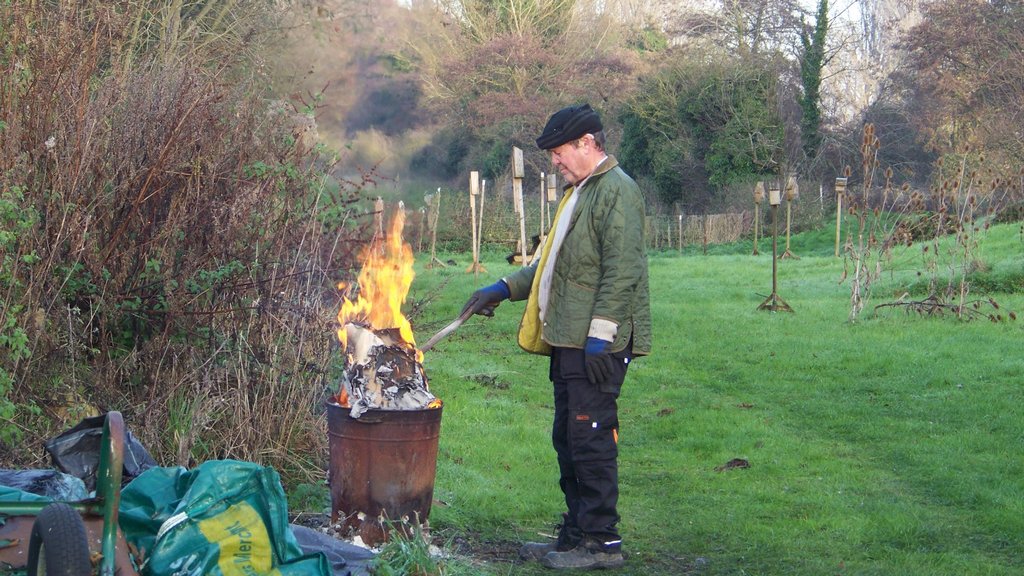 Thursday 28/11/24 When we arrived at the mill we saw several Moorhens eating fallen seed under the feeders. Howard brought cardboard boxes and packing paper as he has just moved house, we used some to get a fire going in the incinerator to burn cuttings and debris. I showed Howard the Bee box we made a few weeks ago.
