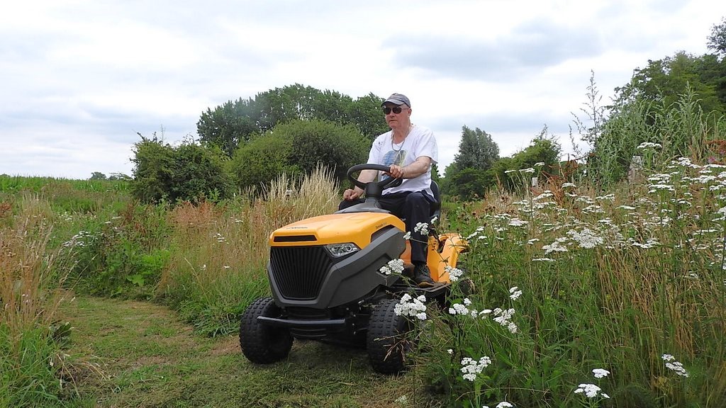 Thursday 17/7/25 The grass needed cutting after the recent rain, so I took the mower and cut grass by the bridge, upstream river bank and entrance track. I then cut paths through the meadow and a clearing for the picnic bench. Howard cut the big lawn and most of the other grass.