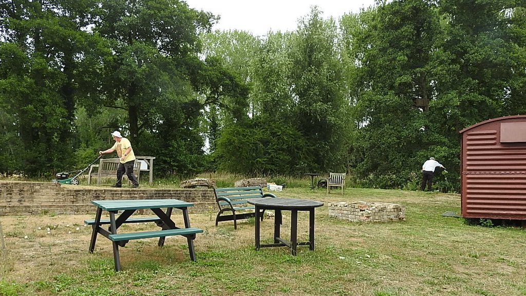 Howard used the push mower to cut grass around the grindstones and benches next to the river bank. Eddie got buckets of river water and filled our tank which is the only successful way of watering the oak saplings which Fred and Debra gave us, if we hadn’t watered them through the drought they would be dead by now. Eddie also watered all the gardens, the sunflowers have reached the gutters of the building.