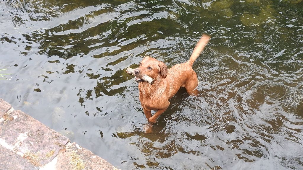 Debra walked down in the afternoon with Hector the Red Labrador, we threw his ball and a stick from our log store in the river for him which he enjoyed fetching. Eddie cut the lawn next to the wildflower meadow, this area had a lot of growth.
