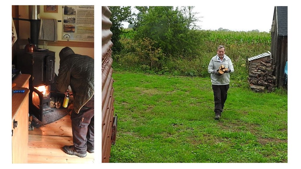 Thursday 24/7/25 We switched on our nest cameras and discovered the eggs we saw last week belong to a stock dove which was sitting on them all day today. I originally thought it was a collared dove, but after studying the pictures I realised its a stock dove, which Howard has confirmed. Eddie lit the fire as it was a cold, rainy day, so we brought more logs into the wagon. We forgot to fit the new rope seal on the fire door, which needs to be done before the fire is lit.