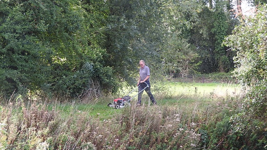 I went on the mower today and cut paths through the meadow. Andrew had already cut the track to the mill and some of the grass on site again. Eddie cut the rest of the grass, then used the push mower to cut the small areas while I filled the bird food.