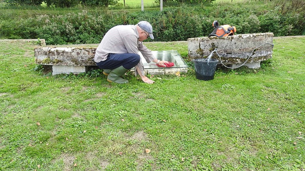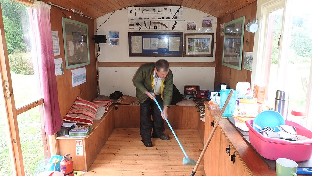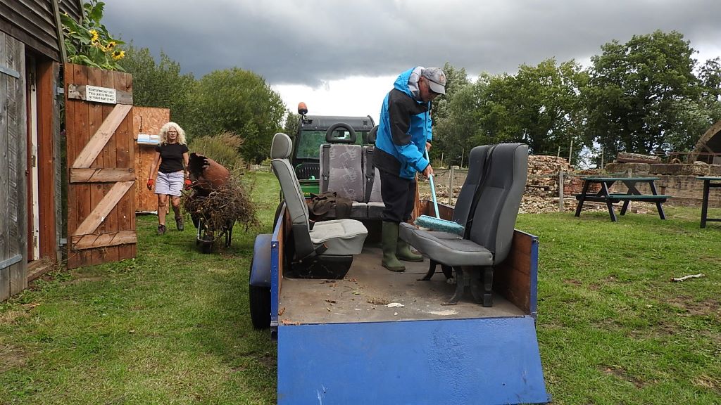 Debra and I used hedgecutters to clear ivy from the two metal stanch fittings which held the lock gates. The last job was cleaning the seats in the trailer and sweeping it out ready for taking visitors to the open days.