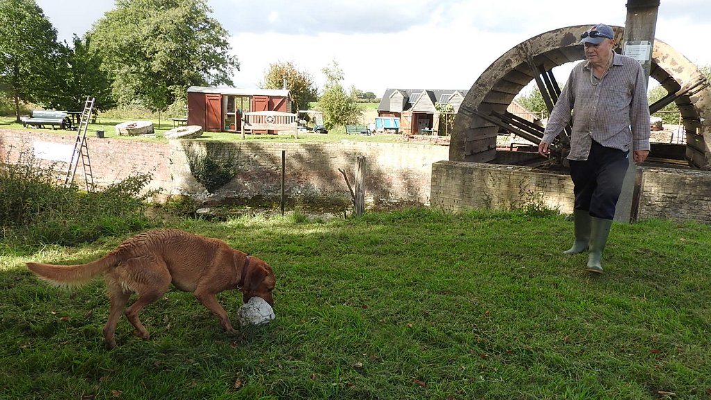 Fred and Debra cleared a fallen tree from the track below the mill, then loaded thick weeds and soil from our compost bays into the tractor trailer which Fred took to The Maltings, as thick weeds and soil don’t rot down. Hector the red labrador was with us, he followed me around when I was working and enjoyed fetching his ball from the river.