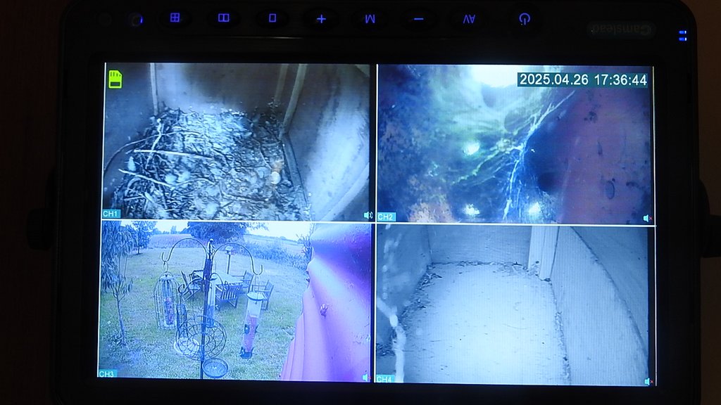 It rained all morning so we worked in the buildings. Eddie switched on the nest cameras in the wagon, the stock doves have fledged and we noticed there are cobwebs in the great tit box which we’ll clean out. Eddie swept the wagon floor and I tidied up.