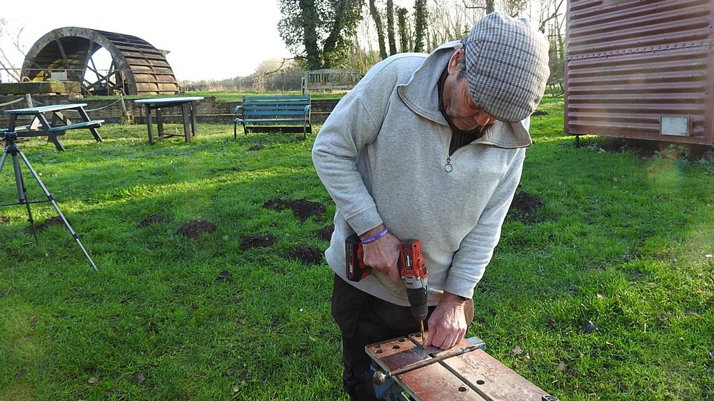 Thursday 4/12/25 It was a cold rainy day so Eddie lit the fire and we had tea in the wagon before starting work. We noticed the river level is higher this week, there is more water behind the water wheel than before.