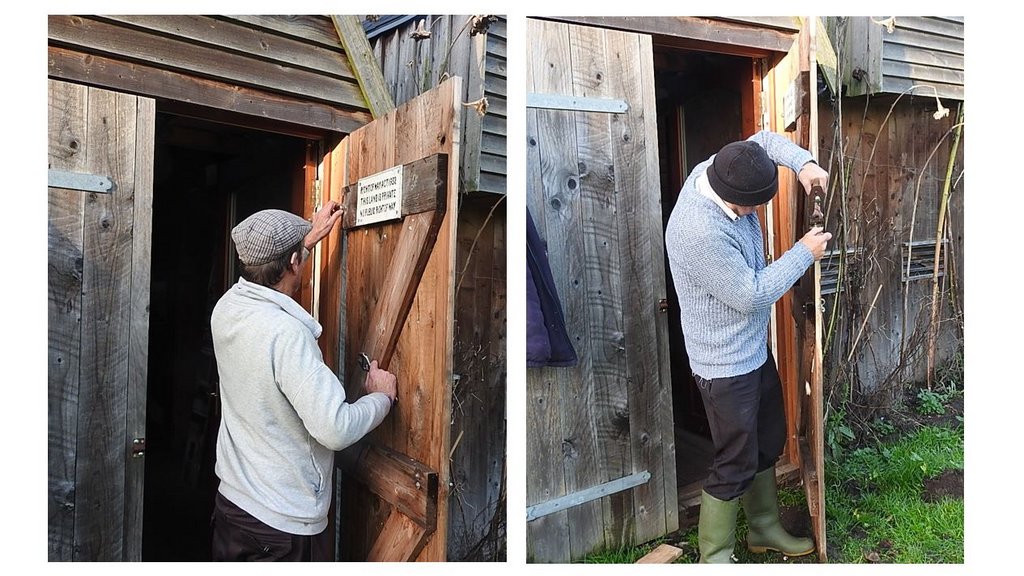 We had hot sausage rolls again in the wagon while admiring the log rack we made. The visitor centre outer door was sticking, so after lunch we removed and repositioned the hinge, I also planed the outer edge of the door, it now opens and closes properly.