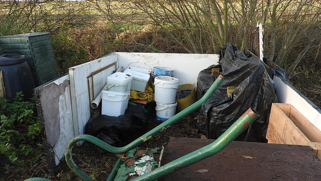 We tidied up behind the original logstore, there was a white display board and fence posts, in the timber store was a drain pipe, and in the shed was a tub of pine cones for making insect hotels, we put all these in the compound. We also put left over notice board frames in the compound, the boards were re-used for displays at open days.